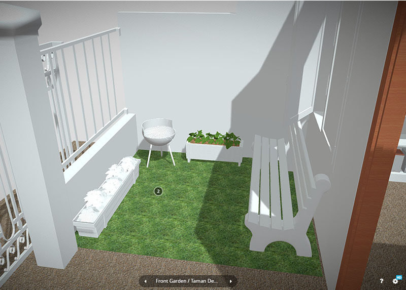 Terdapat area taman yang cukup untuk tempat menanam, dengan ukuran panjang 2,2m dan lebar 2m.