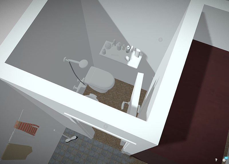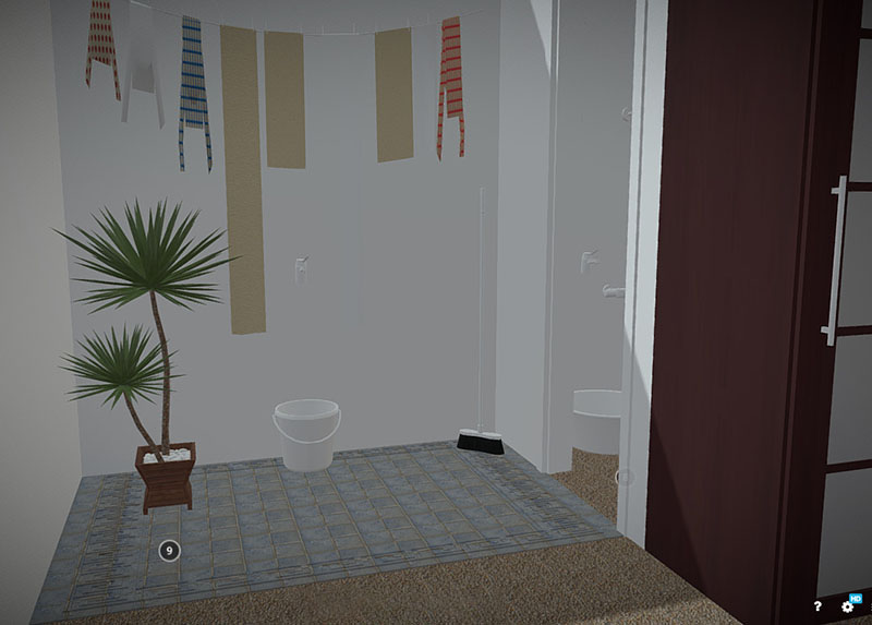 Digunakan untuk tempat mandi, dan keperluan lainnya. Ruangan ini memiliki ukuran persegi dengan panjang 1,3m dan lebar 1,3m.