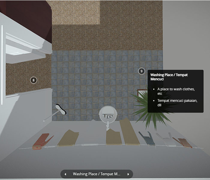 Area ini biasa digunakan untuk mencuci baju dan keperluan lainnya, memiliki ukuran dengan panjang 2m dan lebar 1,3m.